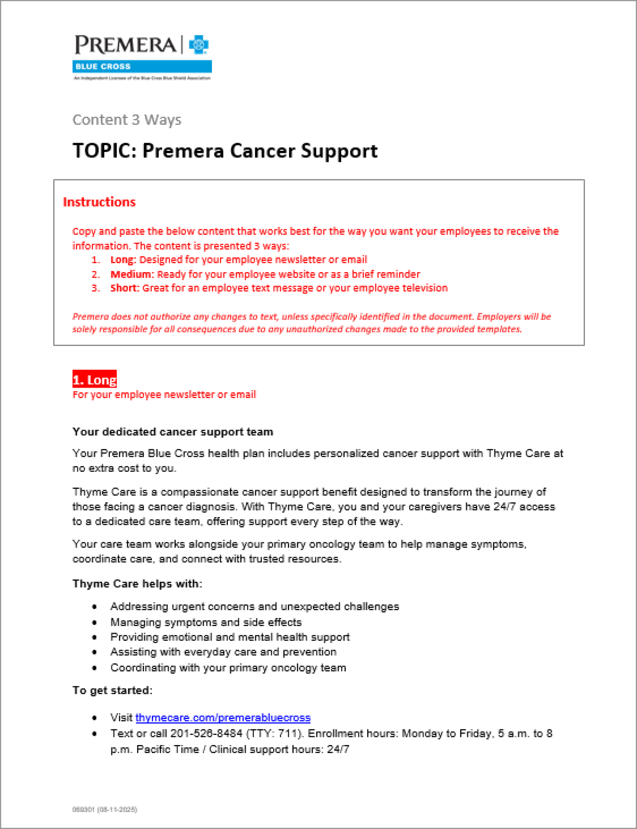 Premera Cancer Support with Thyme Care